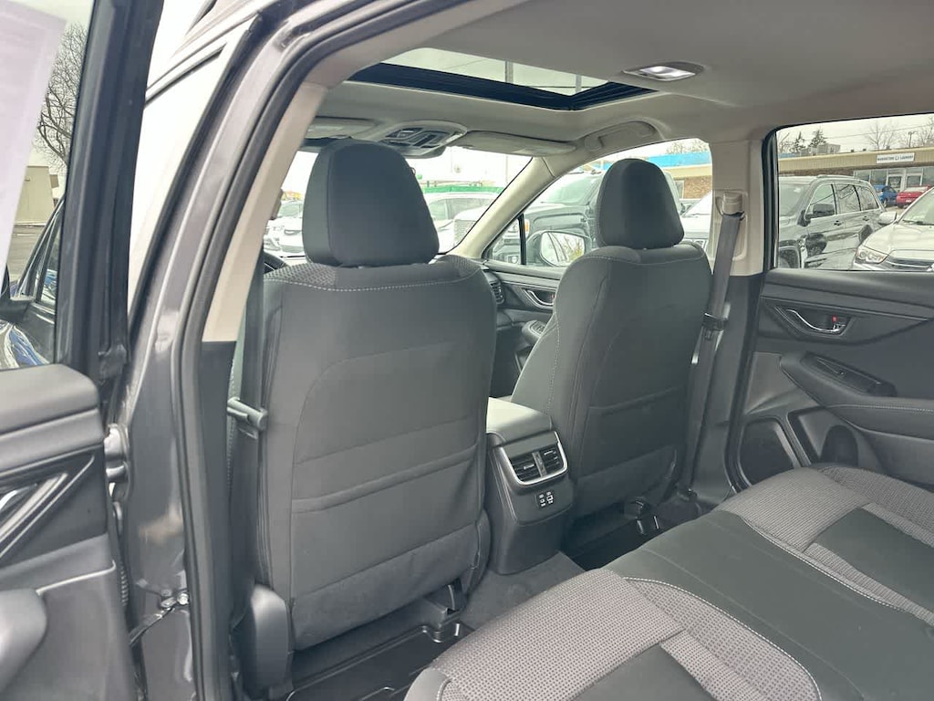 BSD & RCTA & KEYLESS ACCESS & PUSH BUTTON START Blind Spot Detection (BSD), system off switch, exterior power mirrors: BSD/RCTA detection indicator, rear radar detection sensors and lane change assist, Hands-Free Power Rear Gate, automatic close and height memory, Power Moonroof, tilt up and internal retracting w/auto-open/close and laminated, UV, dark tinted glass, Rear Cross Traffic Alert (RCTA), audible vehicle detection warning, Keyless Access w/Push Button Start, PIN code access, laser cut master key, remote transmitter w/removable key, illuminated engine start/stop switch, shift lever park engagement display and audible warning, starter override protection, driver and front passenger door unlock/lock sensor, rear gate unlock sensor and rear gate lock button, Radio: Subaru 11.6, AUTO-DIMMING MIRROR W/COMPASS & HOMELINK.